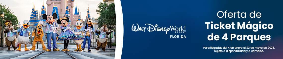 No incluye: Pasajes aéreos, Seguro de viajes, Transportación aeropuerto-hotel en Orlando, Activación de reservación de $99 USD (Se paga al momento de reservar), Impuesto ambiental y resort fee de aproximadamente $15 USD por habitación por noche (se paga directamente en el hotel)
